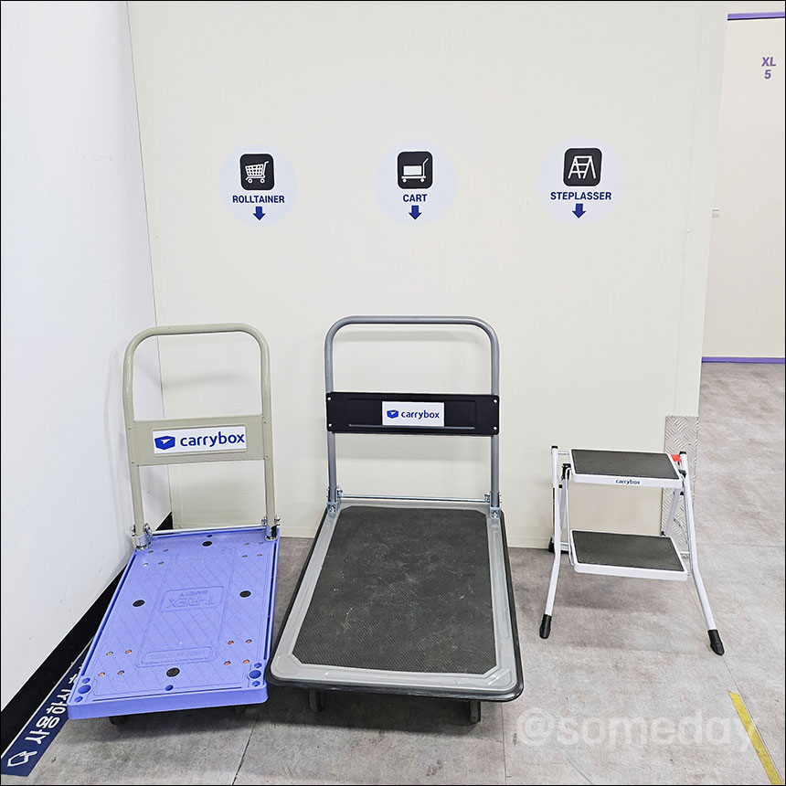 인천 공유창고 캐리박스 이용하면서 사장님 센스가 돋보이는 부분은 다양한 편의시설이에요. 용도에 맞게 카트와 수레, 계단까지 준비되어 있어요. 칼, 줄자, 가위 등은 작업대 서랍 안에 구비되어 있어 저같이 창고 작업하는 이용객에게는 소소하지만 유용한 챙김입니다.