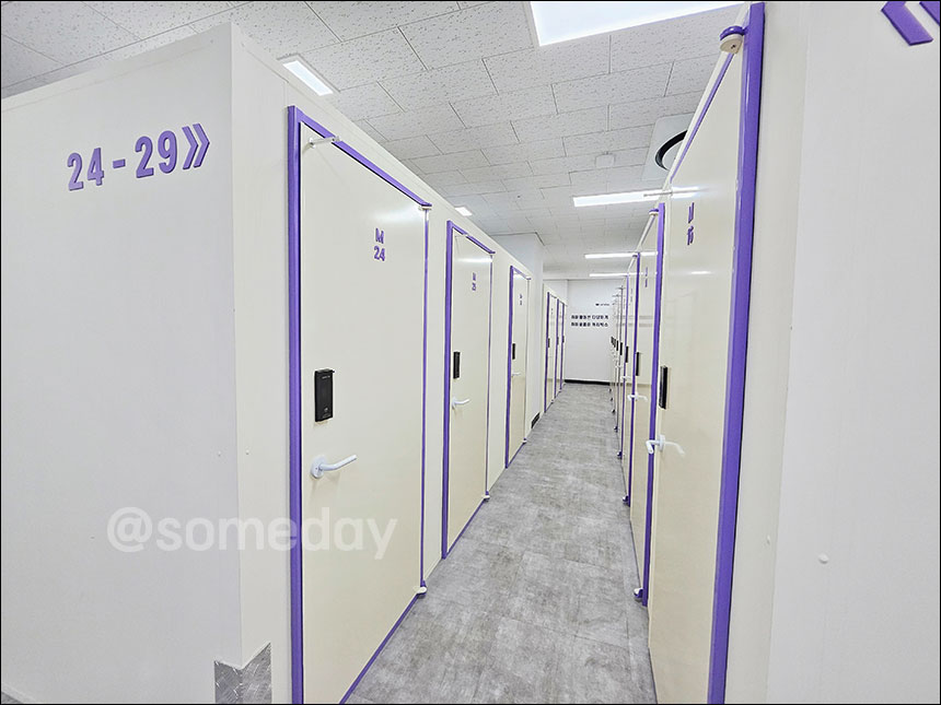 물품을 보관할 때 신경쓰이는 부분이 아무래도 온도와 습도인데요. 무인으로 운영되지만 실내는 온도와 습도가 적당히 맞추어져 있어 항상 쾌적한 상태를 이룹니다. 안에는 사이즈별 창고가 쭈욱 이어져 있는데요. 규모가 어마어마합니다. 인기가 좋아서 큰 사이즈들이나 작은 거 일부사이즈는 늘 재고가 없기도 해요.
